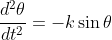 where k is a constant and theta is the angle the pendulum makes with the vertical.