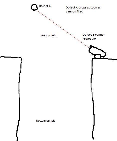 Object A is released at the same time Object B is fired. Both objects will accelerate downwards at g. Now the question is what would object A 'see'.